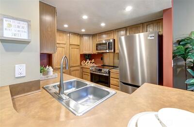 Wow - $50,000 Price Cut on this stunning pre-inspected & beautifully-renovated Top floor End Unit in Country Trace. Brand new balcony, deck coating, railing & siding ($15K) overlooking swimming pool. Soaring Smooth Cathedral ceilings, custom colors, fresh paint, new bathroom w/ custom cabinetry, new stainless steel appliances & lots of windows. Covered carport w/ storage. Pet-friendly. No rental cap. No special assessments. Low HOA's. Well-maintained complex w/ outdoor pool & hot tub. Conveniently located near bus lines, Park & Ride, I-405. Four minute walk to The Village at Totem Lake w/ Trader Joes, Whole Foods, Nordstroms & restaurants. Close to Kirkland Corridor Trail, Woodinville Wine Country, downtown Kirkland & Evergreen Hospital.