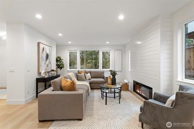 Experience modern living at its finest in this beautifully crafted new home by TCL Construction, ideally located in Rose Hill. Offering 4 bedrooms and 2.25 baths, this residence presents a bright, open layout designed for both style and everyday ease. Defined by striking Northwest Contemporary architecture, the home features upscale finishes and expansive windows that fill each space with natural light. The main level centers around a gourmet kitchen complete with a large island and premium appliances—perfect for cooking and gathering. Upstairs, the primary suite provides a peaceful retreat with a walk-in closet and luxurious spa-inspired bath. Located just minutes from downtown Kirkland. This home includes a 2-car garage with EV charging!