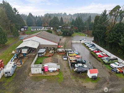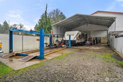 Located in Olympia, this turn-key, fully fenced automotive facility sits on 1.75+ acres with ample room for future expansion. The shop features 10 bays inside the shop that includes 4 above-ground lifts, 3 additional interior bays, an RV lift, a machine shop, and a designated parts department—ideal for high-capacity operations. Outside, enjoy 16 covered RV spots and up to 45 uncovered, potential for up to $7,000 monthly income. On-site studio style-living quarters with gas heat includes a kitchen, bathroom, laundry and unfinished attic space—great for office use, staff housing, or added storage. A rare owner-user or investor opportunity with excellent functionality and flexibility. Buyer to verify information to their satisfaction.