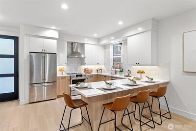 Discover elevated modern living in this stunning new TCL Construction build, perfectly situated in Rose Hill. This 2-bedroom, 2.25-bath residence features a thoughtfully designed open-concept layout that seamlessly blends contemporary style with everyday comfort. Showcasing Northwest Contemporary architecture, the home is enriched with premium finishes and abundant natural light. The main floor boasts a chef-inspired kitchen with a spacious seating island and high-end appliances. Upstairs, the serene primary suite offers a walk-in closet and a spa-like ensuite bath. Just minutes from downtown Kirkland. 2 dedicated parking spaces with EV charging completes this exceptional home!