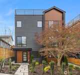 United Seattle presents this modern new home in the West Woodland area of Ballard. Main floor offers possible live/work option with spacious bedroom with separate exterior access plus full bath. Second level includes functional kitchen with complete appliance package & quartz counters. Easy flow into living room for entertaining, complemented by powder room perfect for guests. On the top floor, find your primary suite with spacious bath, including heated floors, and walk-in closet. Third level also includes office or nursery with its own private balcony. Roof deck allows low maintenance outdoor space with territorial views. Ample mini splits throughout for zoned comfort, plus thoughtful storage solutions. Off-street designated parking.