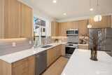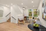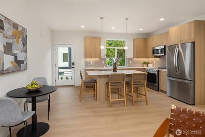 Experience modern living in this thoughtfully designed home within a new 12-home community by Prestigious Builds. Welcoming main level features an open concept kitchen with island seating that flows seamlessly into the living and dining area. The lower level includes two bedrooms and a full bath, offering flexible space for guests, home office, or hobbies. The top floor primary suite is a private retreat with vaulted ceilings and an en-suite bath. Enjoy outdoor living on the private rooftop deck, perfect for entertaining, relaxing, or enjoying morning coffee. Off-street EV-ready parking ensures everyday convenience. Ideally located in Victory Heights, close to shopping, dining, I-5, and the Northgate Light Rail.
