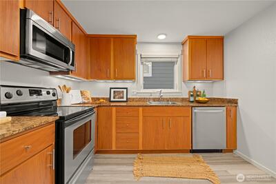 Discover effortless living in this inviting 2-bedroom, 1-bath condo ideally located for commuters and outdoor enthusiasts alike. Enjoy a short stroll to Point Defiance Park and the vibrant Point Ruston waterfront, offering endless recreation, dining, and shopping. Inside, you’ll find fresh interior paint, a cozy wood-burning fireplace, and a brand-new water heater for added comfort and peace of mind. This home also features a private storage unit off the balcony patio and two dedicated parking spaces—one covered, one uncovered. This pet friendly condo has low monthly HOA dues covering water, sewer & garbage. A rare opportunity to enjoy convenience, flexibility, and the best of North Tacoma living.