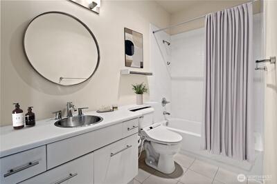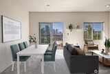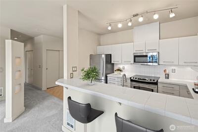 A rare 3 bedroom Penthouse unit on top floor comes w/3balconies +4 parking spaces!, & high ceilings! Sweeping West facing, 180 degree views of mountains, sound, bay, ship canal, city, & Space Needle! This light filled, modern, 1-level unit has all the amenities, space to spread out +w/dryer in unit. The HOA board approved adding hardwoods, A/C mini-splits & is figuring how to add EV chargers. One of the most walkable locations! Light rail station is a five minute walk! Secure garage & lobby entrance. No rent cap & pet friendly. Seller pre-inspected...ask me for it. Can do your own if you want. Secure bike storage. Rent for parking spaces get $180-$250/month; must be people living in building. Extra $$$ if you do not need all 4 spaces.