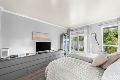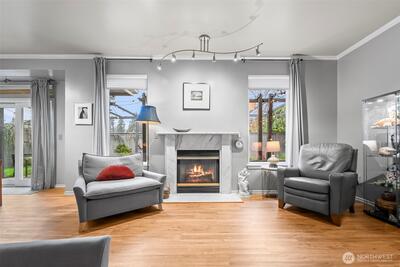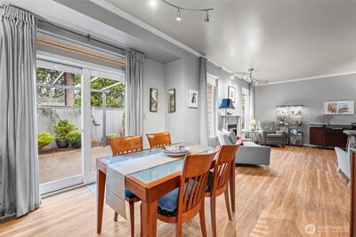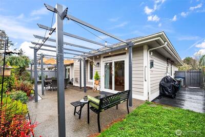 One-level townhome in the heart of the desirable Fircrest community, tucked into a quiet enclave. Nicely updated interior. An open kitchen flows into the living and dining rooms with 9 foot ceilings. Granite tile counters, stainless appliances and cherrywood cabinets with pull-outs and pantry. Gorgeous plank flooring. Cozy gas fireplace. Air conditioning (A/C). The primary suite includes a walk-in closet with built-ins, a private bath with rain-shower and double vanity. You’ll love the private outdoor area - a patio framed by lovely landscape and 30 feet of pergola with moveable canvas cover so you can relax outdoors in any weather! Enjoy nearby shops, dining, park and community center with pickleball, fitness, events & programs.