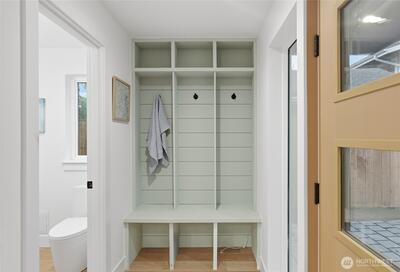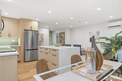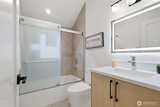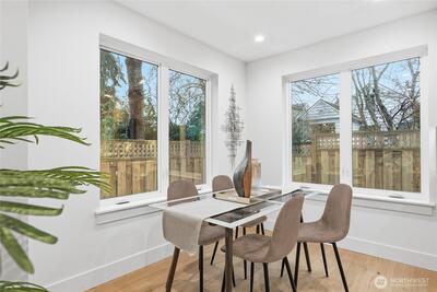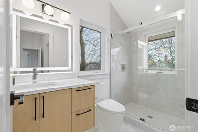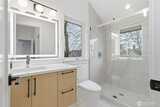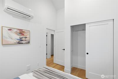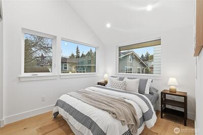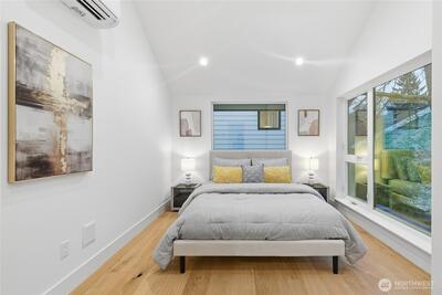 Exceptional new two-story 2-bed/2.5-bath STANDALONE home in Ballard with dedicated entry pathway. Your own fenced yard provides true indoor-outdoor living. Open-concept living, dining, chef's kitchen, and a convenient powder room. Both bedrooms on upper level. Primary suite boasts a generous walk-in closet and spa-inspired ensuite bath. Mini-split A/C throughout keeps you comfortable year-round. Heated floors in baths. Engineered hardwood floors throughout—no carpet. Dedicated parking space. Walk to popular NW 65th restaurants. Close to Golden Gardens and DT Ballard. Quick 15th/99 access for easy Downtown/SLU commutes. Top-rated schools. Perfect for those seeking private, low-maintenance living without sacrificing space or quality finishes.