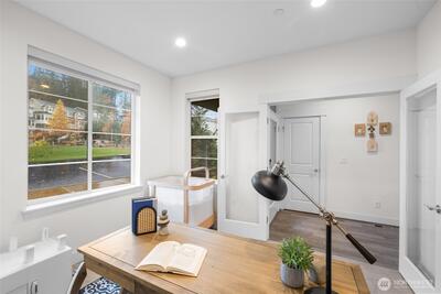 $10K closing credit or prepaid HOA dues! Gorgeous preinspected home loaded w/ incredible upgrades & priced to sell! Sited on a north facing lot w/ across from 1 of 7 n'hood parks & steps from MSFT's newest commuter stop. Live, work play w/ Clubhouse, GYM, parks, trails, shopping! Home features main level entry w/ bright office/den, high ceilings & abundant light. Jaw dropping kitchen w/ quartz & living room w/ cozy gas fireplace. Dining adjacent to deck w/ gas hook-up. Upstairs find spacious Primary BDRM w/ dual sink, shower, deep tub & massive walk-in closet! 2 addtl BDRMS, full bath & laundry! Incredible Media RM w/ Theater System. 2-car garage. A/C! Highly rated Riverview SD, close to major employers! No mowing - HOA covers lawn service!
