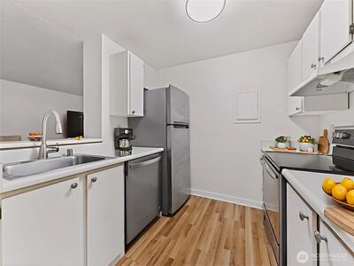 Looking for a place to call your own? Tired of renting? This well-cared-for 1 bed, 1 bath top-floor condo in West Green is a great place to start. Enjoy peaceful, tree-lined views, a cozy wood-burning fireplace, and a spacious covered deck for year-round relaxation. The kitchen features newer stainless steel appliances, and the layout offers great natural light. Community perks include a pool, sport court, and easy access to shopping, transit, and dining. A smart step into homeownership!