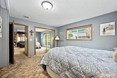 Highly desirable Canyon Terrace 55+ community! This well cared for and very spacious 2bd, 2 bath home offers newer laminate flooring, newer vinyl windows, newer roof and a large kitchen with double ovens and great counter space. Open concept kitchen and family room with pellet stove for those chilly days. Enjoy a covered front porch area for relaxing, an outdoor dining area, and a 2 car carport with attached storage shed for the hobbyist. Community amenities include a clubhouse with library and a game room that includes billiards and ping pong. RV/Boat storage available. Fantastic location close to freeways, shopping and dining. Bring your vision and make this home your own.