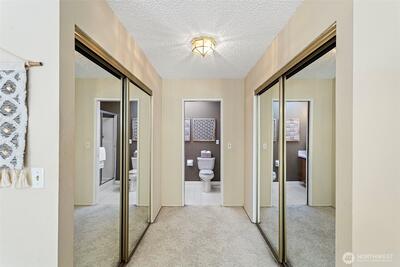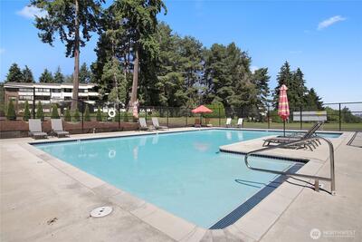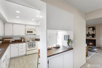 Premium, top-floor end unit with unmatched architectural advantage including multiple skylights that eliminate dark interiors and extra windows all with unobstructed views of the natural, parklike setting. Recently renovated elevator facilitates coveted, stair-free accessibility. Homeownership is integral with Glen Acres Golf and Country Club membership, providing unrivaled amenities: Enjoy golf course, driving ranges, golf simulator, pool, spa, fitness center, pickleball courts, clubhouse w/ full restaurant & bar all within this exclusive gated property. Turn the key to a lifestyle of luxury, wellness and community. HOA dues also incl. W/S/G, gas & full golf benefits! Close to Seattle, Burien, & airport. 55+ Community w/ possible waiver.