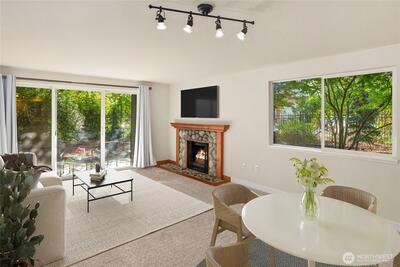LOCATION + PRIVACY = GREAT INVESTMENT! Desired Waterford, gated and private END UNIT—this Waterford condo is priced to sell. Step outside your door through the secure gated entrance and you’re just ACROSS THE STREET from fine dining, shopping, and one block from Juanita Beach, parks, and trails. Hop on the trail for a scenic bike ride or stroll to the waterfront. This lower-level end unit is ideal for your pet, surrounded by beautiful landscaping and mature trees, offering exceptional privacy with no one peering into your windows. Enjoy morning coffee on your west-facing private patio, basking in the sunshine. Freshly painted with new carpet, the home features a beautiful kitchen with eating bar, quartz countertops, stainless steel appliances, and a cozy fireplace. Light and bright with only four steps to entry. Plenty of parking for all your visitors. PLUS: covered deeded parking, newer roof and siding, and an overfunded HOA—making this an incredible opportunity for homeowner