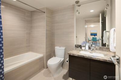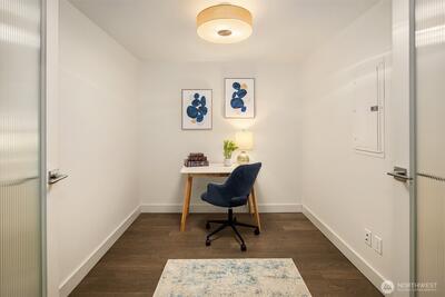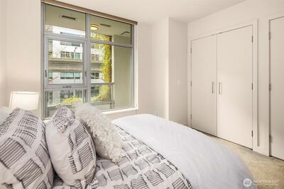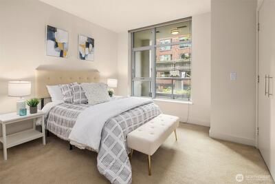 Quiet and private, this west-facing one-bedroom plus flex residence offers refined high-rise living at Insignia. The versatile flex room functions as a guest suite, home office or generous storage—rare for the building. An open-concept layout is anchored by a chef’s kitchen with a built-in Thermador refrigerator, Bosch appliances & sleek finishes ideal for entertaining. Thoughtful separation between kitchen & living areas, along with ample closet storage, sets this home apart. Includes one dedicated parking space & secure storage unit. Investor friendly with no rental cap. Enjoy resort-style amenities including a landscaped 7th-floor park, 41st-floor sky lounges with panoramic city, water, and landmark views, plus 24-hour concierge service.