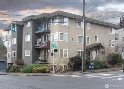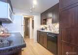 Absolutely perfect location in the heart of Ballard. This well-appointed studio lives like a one-bedroom, featuring a frosted glass partition that creates a private sleeping area. Thoughtful remodel throughout: bamboo flooring, granite countertops, reading lights over the bed, and a cozy fireplace. The kitchen offers floor-to-ceiling cabinetry with built-in charging outlet for your rechargeable household items, under-cabinet lighting, and a convection oven. The bathroom includes a spacious linen closet and a fully tiled walk-in shower with bench and beautiful glass door. Exceptional storage for a studio home. This home features a walk in closet. New water heater installed. All utilities including electricity, are covered in the HOA dues.