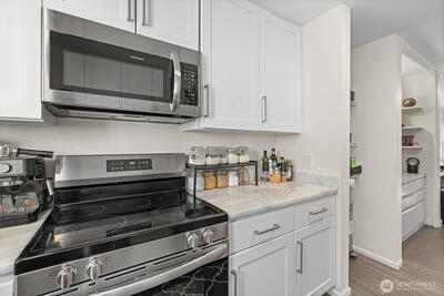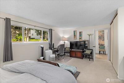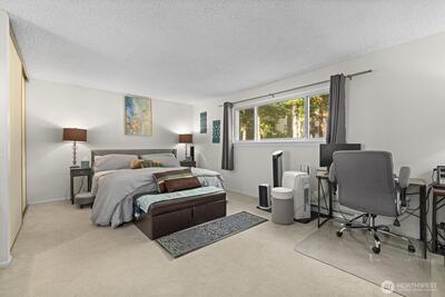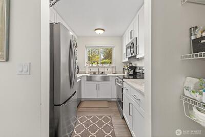 Welcome to Bridgehaven, a stellar community neatly tucked away and private, yet so close to everything! This main level 1 bed, 1 bath condo has everything you need. Beautiful LVP flooring, recent kitchen and bathroom refresh and popcorn ceiling removed. This unit has been lovingly cared for and ready for it's new owner. All appliances stay with the home, additional storage on the deck. Comes with 2 private parking spots, one covered, the other just outside the unit. Enjoy the walkable trails in the parklike setting, sit and relax out by the pool and the updated cabana or hit the links at Jackson, just a stone's throw away. Bridgehaven's location is stellar, with easy access to 99, I5, 522 or skip all that and jump on the light rail.
