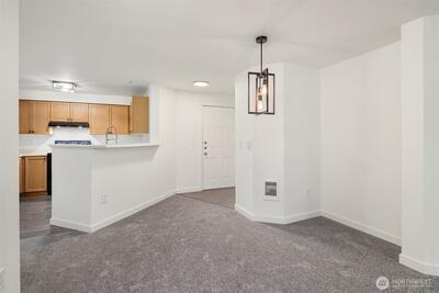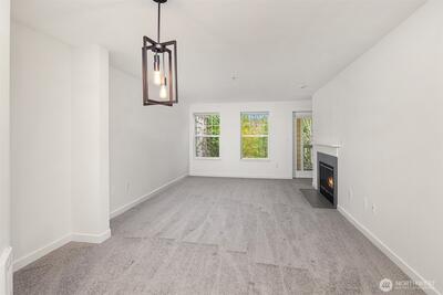 Quiet & Private 1174 SF 3 bed/2 bath 2nd floor end unit with views of greenbelt & trails. New carpet & paint throughout, Living Room windows overlooking trees. Spacious private balcony with new flooring cover - Living room with fireplace, dining room w/additional eating space on kitchen counter. Primary bedroom has a spacious ensuite bathroom & balcony access. Double closets. Upgraded fixtures throughout. Full size W&D. 2 parking spots - one garage/one ext. Clubhouse access w/gym & outdoor pool to enjoy in the summer!! On Burke Gilman/Close to Park & Ride