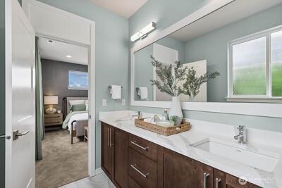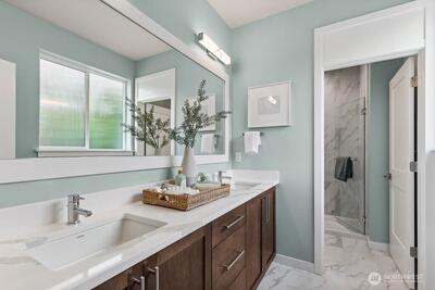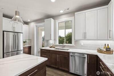 Model home now available! This North facing home fronts an open landscaped area with a huge SW facing deck! All homes come w/ a 2-car garage. 3 bedrooms upstairs & a lower-level bedroom/den w/ its own entrance & bathroom! Enjoy cooking in your open kitchen w/ oversized island, 6 burner Smart gas cooktop, & walk in pantry. Spacious private suite boasts separate sinks & walk-in closet. You'll love the slab quartz counters, undercabinet lighting, blinds, surround sound, ALL APPLIANCES, ample storage, & huge covered Trex deck off the kitchen. Lake WA schools, 220V car outlet, Smart Home features & A/C too! Buyers must register their broker on site at first visit, including open houses. Below market rates for qualified Buyers.