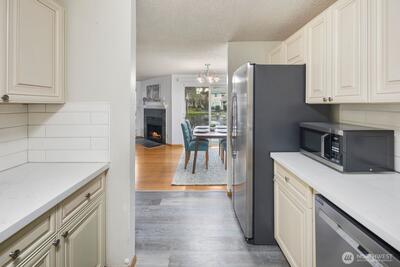 Lovely updated townhome in desirable Hudson Ridge near Des Moines waterfront! Completely remodeled kitchen with soft-close cabinetry, quartz countertop, subway tile backsplash, LVP flooring, under-mount sink. Open main floor living & dining spaces graced with bamboo flooring & cozy wood-burning fireplace. Real hardwood flooring staircase leading up to master bedroom, second bedroom & full bathroom upstairs. LVP flooring upstairs. 2 assigned parking spaces - 1 covered & 1 uncovered. Community amenities include clubhouse, fitness center, pool, playground. Minutes to Redondo Beach, future light rail station at 238th & 99, major highways I-5 & Pacific Highway, Highline College, schools & neighborhood parks, shopping & business hubs.