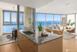 Stunning western views from this home on the coveted NW corner situated high above Pike Place Market. This residence offers phenomenal views of Elliott Bay, the Olympic Mountains, Seattle Big Wheel and sparkling city lights. The perfect setting for gracious entertaining of friends or quiet evenings at home enjoying the sunsets. Generously appointed large open living space, a chef's kitchen with separate pantry, primary suite with spa bath, guest bedroom with bath. Water views from both bedrooms. Just steps from new waterfront park and aquarium, Pike Place Market, Benaroya, stadiums, the arts, retail and Sculpture Park. Concierge 24/7, light rail, trolly and monorail. Rooftop terraces, gardens, BBQ, gym, yoga studio, boardroom, sky lounge.