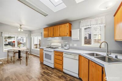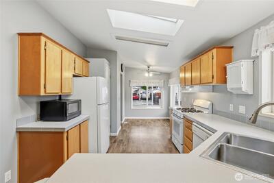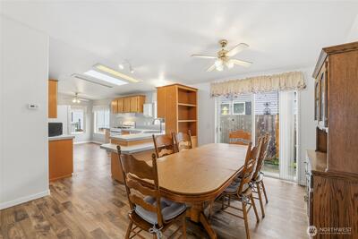 Well-cared-for and move-in ready 3 bed, 1.75 bath manufactured home located on a large corner lot in a great community. Features include vaulted ceilings, an expansive kitchen with breakfast bar, plenty of storage space, and spacious bedrooms including a luxurious primary suite with ensuite bath. The office/den offers flexibility and could easily serve as a 4th bedroom. Enjoy the private patio, perfect for relaxing or entertaining. Excellent location with a comfortable and functional layout—this home is a must-see!