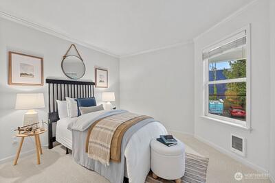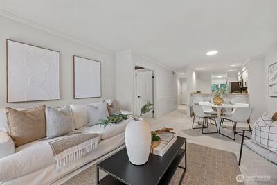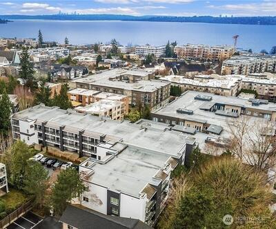 In the heart of Downtown Kirkland nests this stunning condo with a peek-a-boo lake view, just 2 blocks up from Lake Washington! Unit has new paint, new hardwood floors (LVP), new carpet and new fixtures throughout. This 2 bedroom, 2 ba is conveniently located walking distance to all things DTK including multiple Google Campuses, Metro Transit Station, Flagship QFC, PCC, Kirkland Urban, Schools, Parks, Library, Community Pool and the Stunning Lake Washington. Excellent Location! NO RENTAL CAP! Move-in ready. Enjoy privacy, secured building with elevator access, secured parking garage and storage unit off the patio. In 2010 the HOA replaced roof, siding, windows and deck. Welcome home to the lifestyle of all things Kirkland!