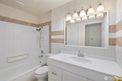 Tucked away at the top of Kingsgate Ridge Manor, this rarely available three-bedroom, end-unit condo offers privacy, light, and a sense of calm the moment you step inside. Nearly 1,000 square feet unfold effortlessly — from the inviting living room anchored by a wood-burning fireplace to the thoughtfully designed kitchen that opens into the dining space. The primary bedroom features a walk-in closet, while a private covered balcony overlooks manicured grounds below. In-unit laundry, dedicated parking just steps from your door, and no rental cap add everyday ease. Moments to Kirkland, I-405, and Northshore schools — a home that feels quietly well-positioned.