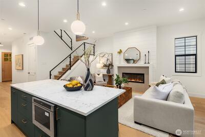 Welcome to this fantastic new construction home in East Bellevue. Main level features large entryway with built-in storage bench and convenient powder room - perfect for guests. Open layout and a well-appointed kitchen offering abundant storage, spacious island and designated dining space. Fireplace with custom surround creates cozy & inviting living area. Spacious backyard great for entertaining or pets. Upstairs, find your primary suite with high ceilings, luxurious walk-in shower and dual vanity. Two additional bedrooms and full bath complete the second level. Easy parking with private garage and driveway in this quiet neighborhood. Enjoy close proximity to shopping and dining plus ample parks and the west shore of Lake Sammamish.