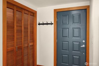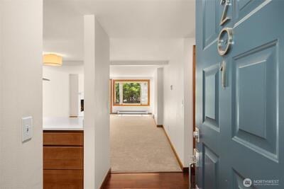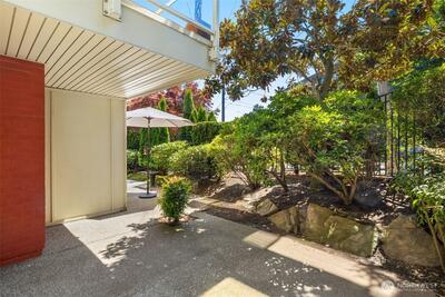 Step into beautifully updated corner unit in the desirable Taylor Anne Condominium in the heart of Queen Anne. Ground-floor home features a spacious one-bedroom layout with seamless indoor-outdoor living, thanks to a private patio that is perfect for relaxing or entertaining. The modern kitchen features stainless steel appliances, quartz countertops, and top-down/bottom-up shades, all complemented by a charming wood-burning fireplace. Additional updates include a built-in dresser, new LG washer and dryer, and plush new luxury carpet in the living room. Enjoy secure gated parking and a dedicated storage space. Ideally located near Seattle Center and South Lake Union, with endless options for dining and shopping. No pet restrictions.