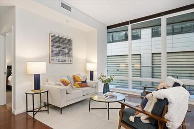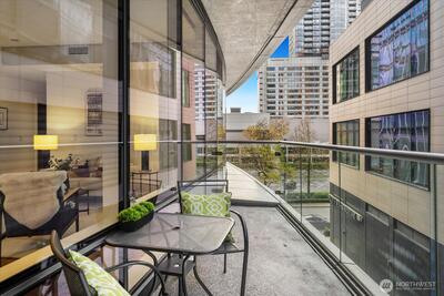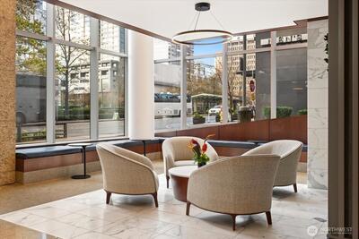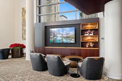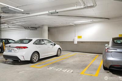 Live in the heart of downtown Bellevue. Easy access to the one bedroom unit- no stairs or elevator needed from unit's large parking space which is on same floor. EV charging available A grand entrance into soaring ceilings with an airy feel. Floor to ceiling windows with balcony. Chef's kitchen with built in appliances. Open living room/ family room concept with kitchen & eating bar. Laundry room & coat closet with storage. Bellevue Towers offers fitness rooms, whirlpool spa, entertaining dining room with kitchen, community room, theater & outdoor terraces, concierge. Walk to shopping, dining, downtown park and more. Can't beat this location! Easy to show.