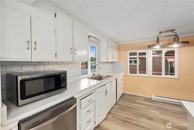 Centrally located in an all-ages park just off Woodinville Drive with quick access to I-405, this beautifully remodeled manufactured home offers both convenience and comfort in the heart of Bothell. This 2-bedroom, 1-bath residence features 913 sq ft of fully updated living space including a kitchen with SS appliances, granite countertops and updated windows. A utility room, finished detached shed perfect for an office or hobby room. Just minutes from downtown Woodinville, popular wineries, Bothell Landing Park, Burke-Gilman Trail, and The Village at Totem Lake. You don't want to miss this one!