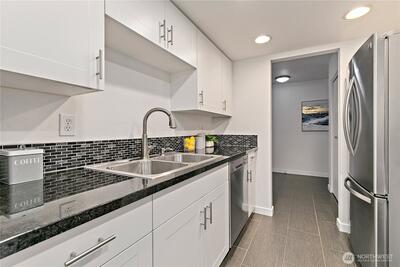 Exceptional location meets unmatched comfort & privacy at this amazing home! Nestled on the edge of downtown Bellevue, this unit has it all. Beautiful tile greets you, leading to the stylishly updated kitchen w/SS appliances, marble counters, & tile backsplash. From there step into the dining area, which flows into a large living room with a cozy fireplace, leading to the expansive private deck! Other features include primary bdrm w/walk-in closet, updated en-suite bath, in unit W/D, large 2nd bdrm, & updated 2nd bath. Garage parking AND addtl designated spot (#254 right out front), XL storage unit, & access to the community pool / cabana. Plus, no rental cap! Prime location near transit, 520 & 405, Bellevue Square, major campuses & more!