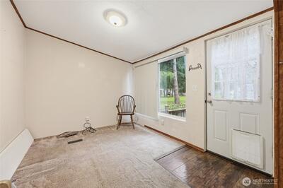 Have it all at an affordable price. Manufactured home with yard, storage sheds and 2 car enclosed carport in the lovely park of Whispering Woods. Enjoy country living away from the bustle of city traffic, yet live just minutes from shopping, dining and I-5 for commutes. 2 bedroom home with den/office, living room, updated ample sized kitchen with newer appliances and soft close cabinets. Split bedroom floor plan, primary bathroom with double sinks, soaker/jetted tub. Loads of storage space inside and out. 2025 roof with 40 year transferable warranty. 2016 forced air furnace w/AC. No age restrictions, pets allowed. Park fees are a manageable $665 per month which covers water, sewer and garbage. All appliances stay!