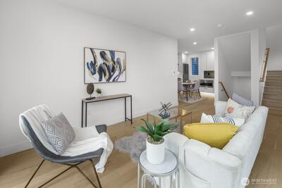 Crisp modern design meets everyday comfort in this Bryant 3BR/2BA townhome. Entry-level flex space serves as a 3rd bedroom next to a full bath, ideal for guests, a home office, fitness or creative projects. The next floor up is devoted to daily living: a modern kitchen with quartz counters, stainless appliances and wide-plank floors that flow to dining and a bright living room for lounging or entertaining. Finally, the top-floor primary suite adds a walk-in closet, private bath with modern finishes and nearby laundry, plus modern systems and low-maintenance design throughout. Centrally located close to parks, cafes, the Burke-Gilman Trail, University Village and UW, plus quick access to I-5 and downtown Seattle. Don't miss out!