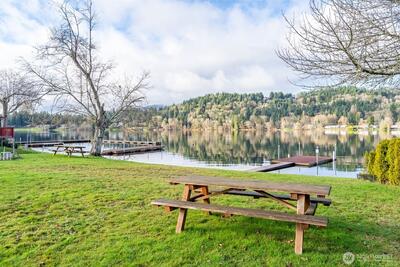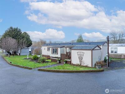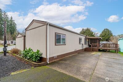 Welcome to the LAKE LIFE! Enjoy coming home each day to this cozy, well-maintained 2bed/1bath home in Lakeside Private Residences, an all-ages park. Then take a short stroll to the relaxing waters of BLACK LAKE. Enjoy unlimited use for you & your guests of the BBQ area, firepit, 3 docks, boat launch & more. Kitchen has tons of counter space, a large island, & stainless appliances. Major upgrades done in 2024 include a NEW ROOF, HEAT PUMP (ducted), EV charger, NEW W/D & REFRIGERATOR. All appliances stay. Enjoy BBQ's on the covered deck, rain or shine. 2 large storage sheds for your "stuff", lots of parking & a large corner lot offers a spacious feel. Park approval/background check is needed for new tenants. Space rent is $850