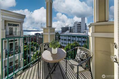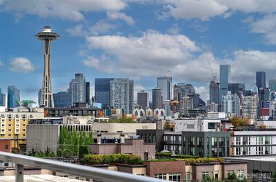 Unobstructed view, top floor corner condo at the desirable IV West in Lower Queen Anne. West facing windows and a private balcony showcase views of Puget Sound and the Olympics. Penthouse worthy high ceilings frame this updated spacious floorplan. The large living space features a gas fireplace, open kitchen with newer appliances, hardwood floors, eating bar, and additional dining space. Large bedroom, walk-in closet and huge laundry room. Primarily owner occupied with a strong HOA and low dues include water, sewer, garbage, gas & earthquake insurance. 2 garage parking spaces and additional storage included. Centrally located to Seattle’s favorite fun - Climate Pledge Arena, theaters, food & drink, festivals, amenities & services nearby.