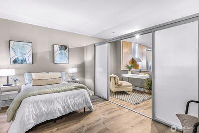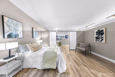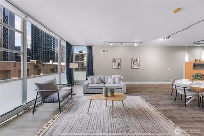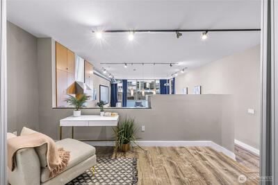 Stylish Urban Loft in the Heart of South Lake Union + 3 garage parking spaces! Premier unit, the largest 1 bedroom unit in the building - this modern, top floor loft is filled with natural light courtesy of the expansive wall of floor-to-ceiling windows that highlight the soaring ceilings & open layout. The kitchen features maple cabinetry, slab-stone countertops, tile backsplash, stainless steel appliances, & a deep sink - perfect for cooking & entertaining. The raised bedroom suite offers generous closet space + a spacious en-suite bath. Working from home? The den is the perfect work space, or add a couch for the ideal reading nook/guest space. Radiant heating, A/C hookup, in unit W/D, & separate guest bathroom for comfort & convenience. Secure building, designated garage parking, fitness center, pet friendly, no rental cap. Perfect transit & walk score, close to local offices, and easy access for commuters - come see this gem! Mortgage savings may be available for buyers of this lis