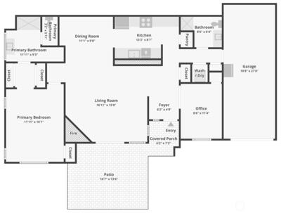 Welcome to Garden Village 2-bedroom, 2-bathroom condo in the vibrant Providence Point, an active adult 55+ community. This quiet, warm and inviting home is all on one level, with accessible features such as a level entry and attached garage. A fully fenced patio is right off the living room through sliding door. The primary bedroom has multiple closets with custom organizers and renovated, spacious walk-in shower in the ensuite bathroom. A versatile secondary bedroom/den is perfect for guests or a home office. The well-appointed kitchen includes quartz countertops, stainless appliances, ample storage, and a pantry. Enjoy the comfort and ease of living in this condominium home. New Flooring & Trim, updated lighting, Furnace & FP serviced ++
