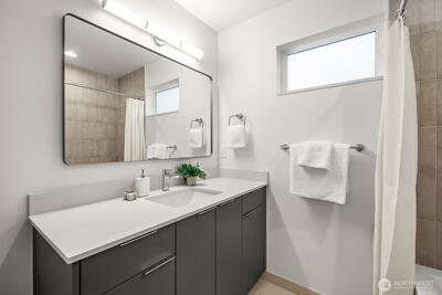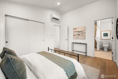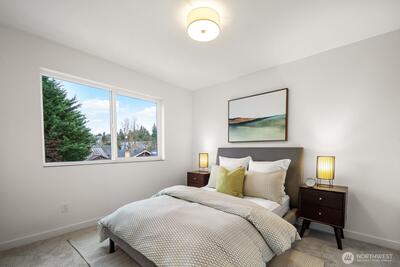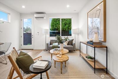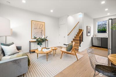 Urban yet warmly livable, this newly built 2BR townhome sits in a small enclave between Phinney Ridge and Green Lake. Step into an open main floor where living, dining and kitchen connect in easy-flow layout with natural light, creating a cohesive space to cook, host and unwind. The 2nd floor adds a generous secondary bedroom, full bath and laundry, ideal for guests or a home office. And finally, the top-floor primary functions as a private suite with its own bath, walk-in closet and retreat. This home offers modern systems, contemporary finishes, EV-ready parking and a low-maintenance footprint in a convenient location near the Green Lake loop, Woodland Park Zoo, Phinney Ave cafes and dining, plus transit to downtown and South Lake Union.