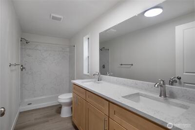 Experience modern comfort in this fully renovated 3-bedroom, 2-bath double-wide home nestled in the peaceful Delphi Mobile Home Park. The spacious backyard is perfect for entertaining, play, or relaxing outdoors. Recent updates include new flooring, fresh paint, stylish blinds, a new water heater, updated toilets and light fixtures, and a standout kitchen featuring stainless steel appliances, plus much more. Both bathrooms offer elegant quartz showers, creating a spa-like feel. Conveniently located just 15 minutes from Olympia and within the desirable Tumwater School District. Lot rent is $730/month. Move-in ready and thoughtfully updated—this home truly checks all the boxes.
