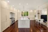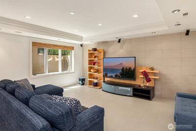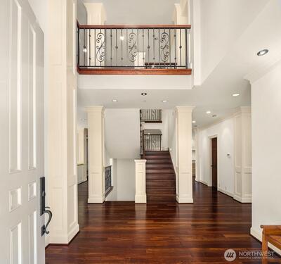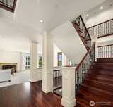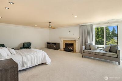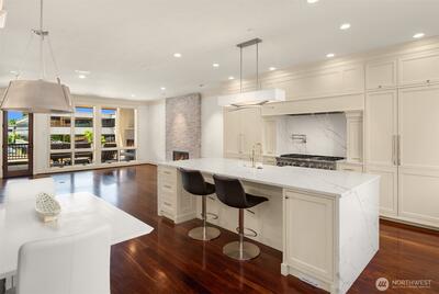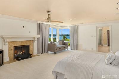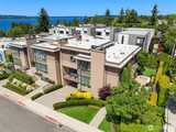 Incredible opportunity! Luxurious 5,400+ sf home with a private elevator servicing all floors. Views of Lake WA & Seattle! Gated level entry access, no steps! Remodeled chef's kitchen; custom cabinetry, quartz & top of the line stainless appliances. Gracious living & dining rooms with walls of windows to the view. Family room with stack-stone gas fpl. French doors lead to covered view deck with gas fpl. Walk-in pantry. Main-floor office. Expansive primary suite with gas fpl, sitting area & views! Spa-like 5-piece bath. 2 additional en suite bedrooms. New heating & cooling system Dec 2025. Coveted Carillon Pt. Close to waterfront parks, dining & downtown Kirkland. HOA dues cover common areas, earthquake, insurance & all exterior maintenance.