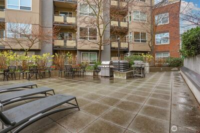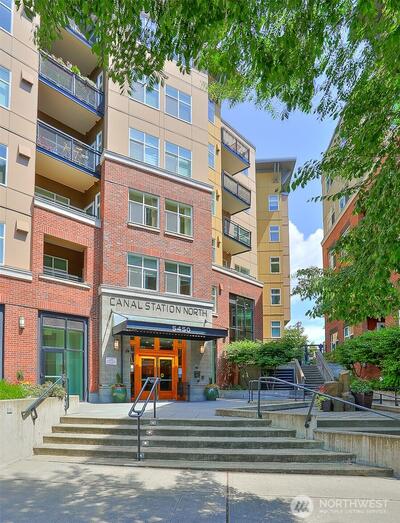 Hurry to this desirable top floor, junior one bedroom unit. It won't last long located in the popular Canal Station! Stylish unit features open concept floor plan, with sleeping alcove and walk in closet, spacious kitchen, breakfast bar, granite countertops and more! Freshly painted throughout and brand new carpeting. Enjoy city views from the living room and private balcony. Large full bathroom plus washer & dryer. Secured garage with parking spot. You cannot beat this fantastic central location! All Ballard's vibrant shops, restaurants, movie theater and Farmer's Market are right here! Plus the Canal Station has great amenities like outdoor spa and dog run. Gym, sauna, party room and even a concierge! It's fabulous!