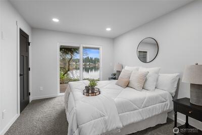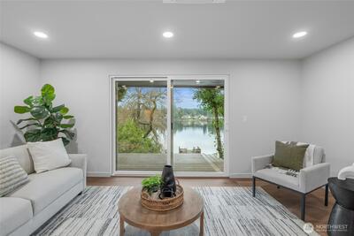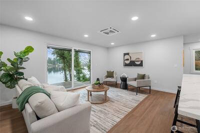 Experience Pattison Lake waterfront living with your own incredible dock and stunning lake views. This fully remodeled 1,165 sq ft home functions as a 3-bdrm residence (2-bdrm septic) w/ 2 baths and offers open-concept living with large glass sliders showcasing the water from the main living areas. The brand-new kitchen features quartz countertops, new cabinetry, SS appliances, and LVP flooring throughout. Both bathrooms have been completely remodeled, w/ major updates including a new roof, updated electrical and HVAC, new windows, fresh int/ext paint, new millwork, and interior doors. The primary includes an en-suite bath and private slider to wake up to lake views. A large detached 2-car garage completes this rare lakefront opportunity.