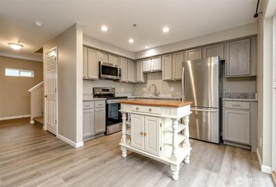 Beautiful 3 bed 2 1/2 bath condo in Hartland Place. Excellent location close to freeway, shopping( South Hill Mall), dining, Pierce College and more.. just minutes from everything and anything you need! Enjoy newer vinyl plank flooring & newer carpet throughout. Updated Kitchen & bathrooms complete with granite stone counters and Stainless steel appliances. All appliances do stay including washer and dryer! The layout is fantastic with Great Room and 1/2 bath on main and all 3 bedrooms including a good size primary with private ensuite on upper level. This turn-key delight is ready for you to just move in and enjoy. No Rental Cap. Efficient radiant heating which is in the floor. Radiant heat is quiet & clean. There are no ducts, no vents, & no furnace!