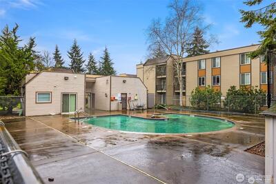 Location! Location! Location! Remodeled top floor 3 bedroom, 1.75 bath, corner condo in desirable Bellevue Manor complex across the street from Microsoft. Light & bright home features formal living & dining areas, beautiful h/w floors throughout. Elegant tile in both bathrooms. Generous size bedrooms. Kitchen w/pantry. Wood blinds, new water heater. View of Cascades from your private balcony. Condo has 4x6x8 storage. Security door to building w/intercom. New exterior siding, windows, & balcony. Assigned parking space convenient to building entry. Next door to Goldsmith Neighborhood Park for walking trails. Amenities: swimming pool & tennis courts. Close to shopping, freeway, light rail station, bus lines, Pro Club, Nintendo. No rental cap