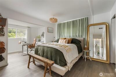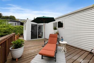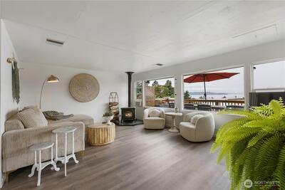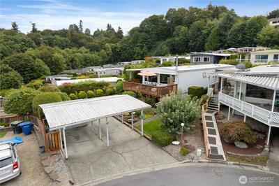 Charming 55+ Community Home w/ Stunning Puget Sound View. Welcome to this beautifully updated home, perfect for comfortable & easy living. Enjoy a breathtaking view of the Puget Sound from the large front & side decks, ideal for relaxing or entertaining. Inside, you will find new LVP flooring throughout, fresh paint, light fixtures, new dishwasher & fridge, both baths have new sink & counter top. The electrical including the panel, siding & windows have been replaced. A cozy wood-burning fireplace for the cooler evenings. A well-maintained fenced yard w/a garden area & a 2-car side-by-side carport. Plus, you're just a short walk to the scenic Redondo Beach boardwalk, offering the perfect blend of a quiet community & active coastal living. Homes in parks don't pay property tax which is a nice savings.
