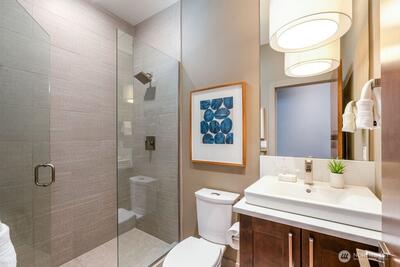 Sophisticated & inviting, this 5BD/4BA end-unit home offers contemporary finishes, open living, & premier location. Sunlight pours through oversized windows, highlighting the expansive layout & sleek designer details. The gourmet kitchen with oversized island, double ovens, & wine fridge anchors the main level & flows to bright dining & living spaces with floor-to-ceiling windows. The primary suite features a spa-inspired bath & private balcony, while additional bedrooms, baths on every level, & a versatile lower-level bonus room provide comfort & flexibility. Outdoors, enjoy a fully fenced yard. A spacious 2 car garage completes this meticulously cared-for one-owner home, moments from Lake Washington, parks, dining, & downtown Kirkland.