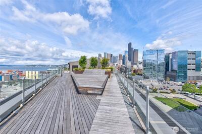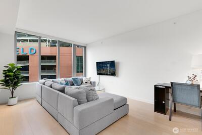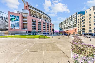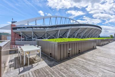 On the market just in time for the Fifa Cup games starting in June and the World Cup in 2026. This east-facing unit offers spectacular views of LUMEN Field. The unit featuring floor-to-ceiling windows, quartz countertops, premium appliances with gas range, and central A/C. The op Plenty of space to host a group or pre-func before the game. As the Waterfront nears completion, Pioneer Square is in demand for restaurant, hotel and retail venues. If you love a sophisticated, urban lifestyle, now is the time to acquire your full-time home or weekend getaway in the heart of the city. Shared amenities include stunning rooftop decks w/enviable views, outdoor BBQ’s, fitness room, wine lockers, pet area & 24/7 secure entry.