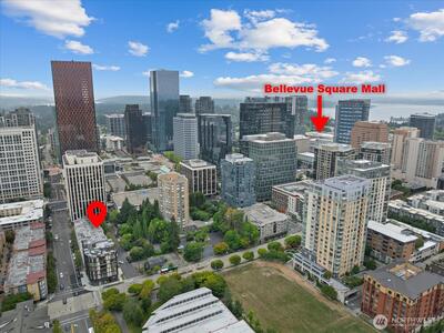 Experience refined living in the penthouse at the Metropolitan, in the heart of downtown Bellevue. This light-filled home features 9-ft ceilings, skylights and a west-facing deck overlooking a private, treed outlook with lovely sunset views. The gourmet kitchen offers granite countertops, high-end SS appliances, and abundant cabinetry that flows seamlessly into open living & dining spaces. Unwind in the spacious bedroom with a generous walk-in closet & a serene bath featuring an oversized vanity. Recent updates include new A/C & plush carpeting throughout. Secure, well-maintained building w/elevator access, garage parking, storage unit, no rental cap & no special assessment. Just steps to fabulous dining, boutiques, parks & Bellevue Square.