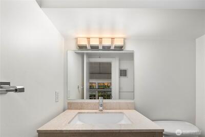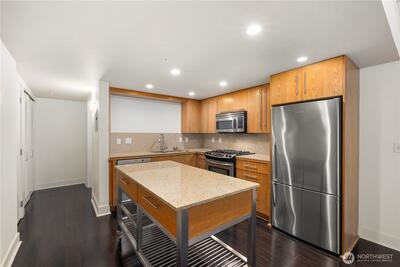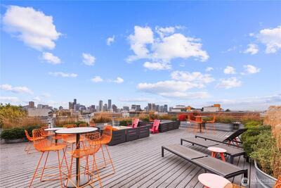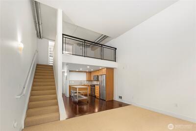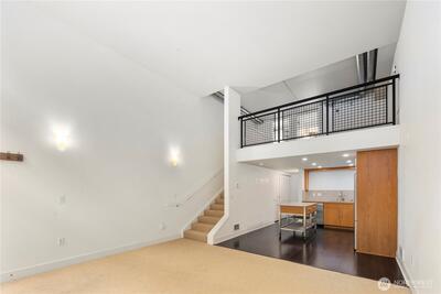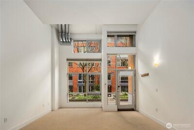 The Brix. Industrial modern loft on Broadway in the heart of Capitol Hill. Private, gated courtyard entrance. Soaring ceiling and towering windows. Natural light. Art gallery walls. Ample kitchen with granite, stainless steel and rolling chef's island. Spacious primary suite with walk in closet and attached full bath. Loft overlooking open floor plan and elegant, treelined courtyard. Sophisticated building with rooftop deck and city views. Secure one vehicle parking and storage. An urban oasis amidst the buzz.