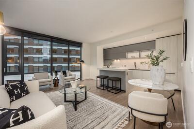 Nestled in the heart of downtown Bellevue, this brand new luxury condo offers a refined one-bedroom, one-bath retreat crafted for modern living. Smart and functional, the residence boasts top of the line fixtures from world renowned brands, blending elegance with practicality. Thoughtfully crafted interiors feature harmonious tones, clean lines and discreet textures, creating a balanced environment that nurtures well-being. Beyond your private sanctuary, enjoy amenities including a fitness room, stylish lounge and dog run. The building's modern lobby welcomes you with dramatic lighting, a living wall and a striking fireplace - signaling your arrival at a place where luxury and wellness converge seamlessly .