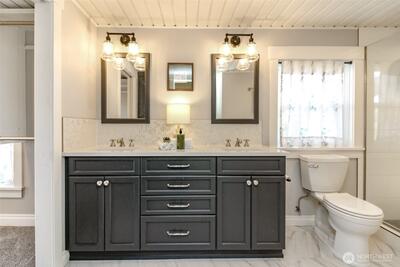 Experience the enduring elegance of the historic Eisenbeis House, a treasured landmark set on a prominent corner lot with captivating water views in the heart of Steilacoom. This remarkable residence blends preserved architectural character with refined modern updates. Original entry and upstairs hardwood floors, intricate built-ins, and a striking 1907 cast iron clawfoot tub reflect timeless craftsmanship. The stylish primary bath features a fully tiled shower and walk-in closet. Mature landscaping frames inviting outdoor spaces, while the charming pub off the dining room offers a distinctive setting for entertaining. Just minutes from three nearby beaches, this is a rare opportunity to own an irreplaceable piece of Steilacoom history.